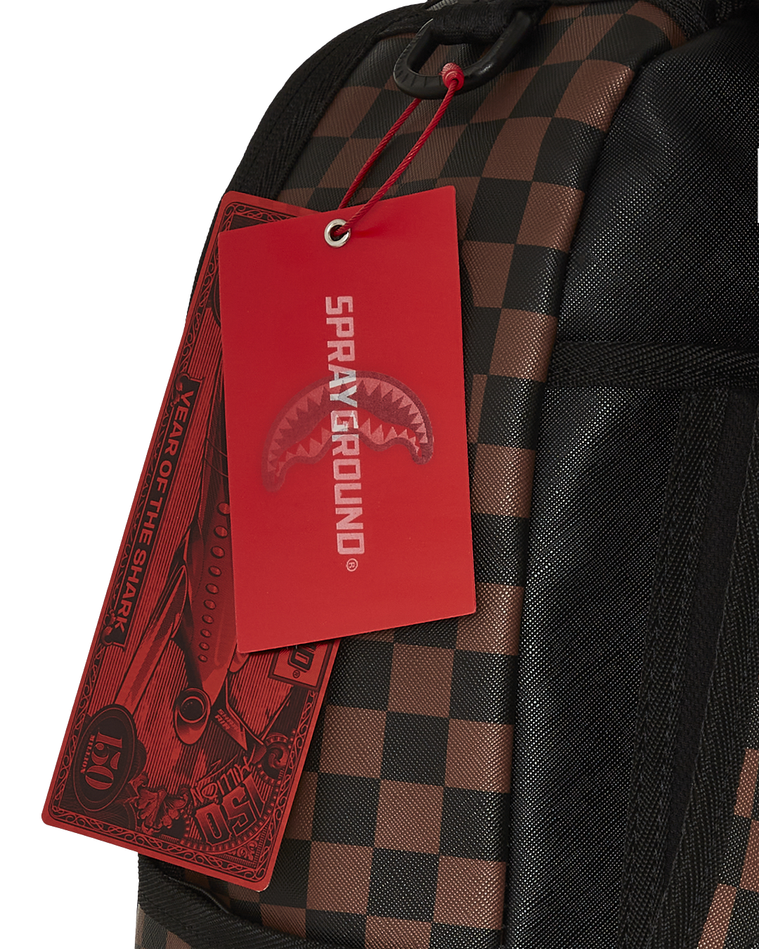 Dimensions: 18" x 6" x 11.5" • Front zipper pocket • Side pockets • Zippered Stash pocket • Separate velour sunglass compartment • Ergonomic mesh back padding • Adjustable Straps for custom sizing • Gold zippers with metal hardware • Metal "Sprayground Authentic" badge • Slide through back sleeve connects to carry-on luggage to free your hands