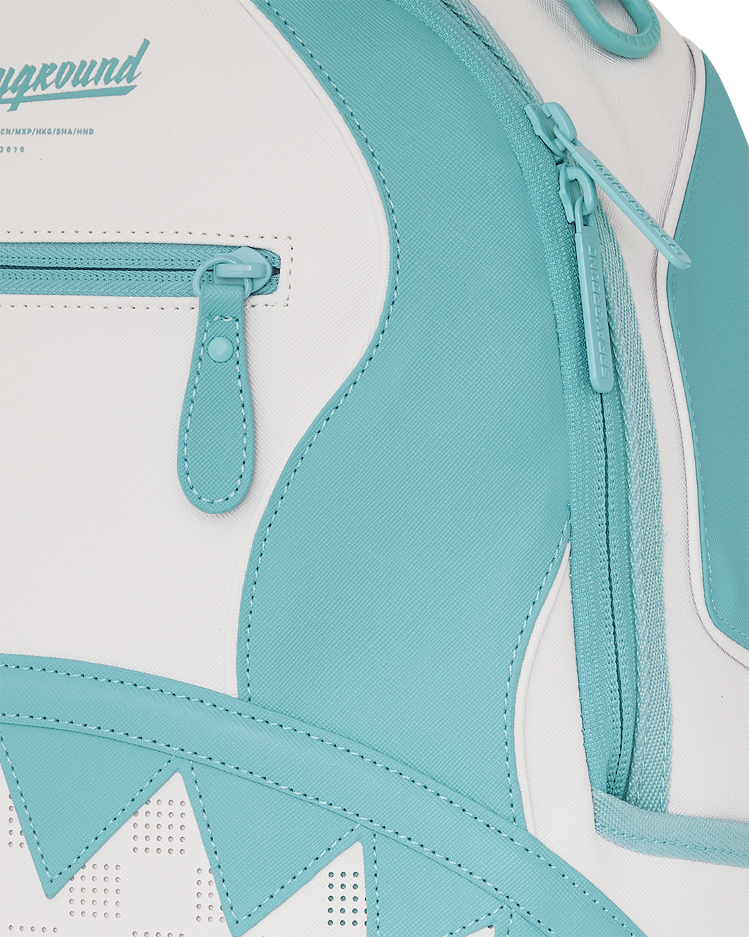 Dimensions: 18" x 6" x 11.5" • Front zipper pocket • Side pockets • Zippered Stash pocket • Separate velour sunglass compartment • Ergonomic mesh back padding • Adjustable Straps for custom sizing • Gold zippers with metal hardware • Metal "Sprayground Authentic" badge • Slide through back sleeve connects to carry-on luggage to free your hands