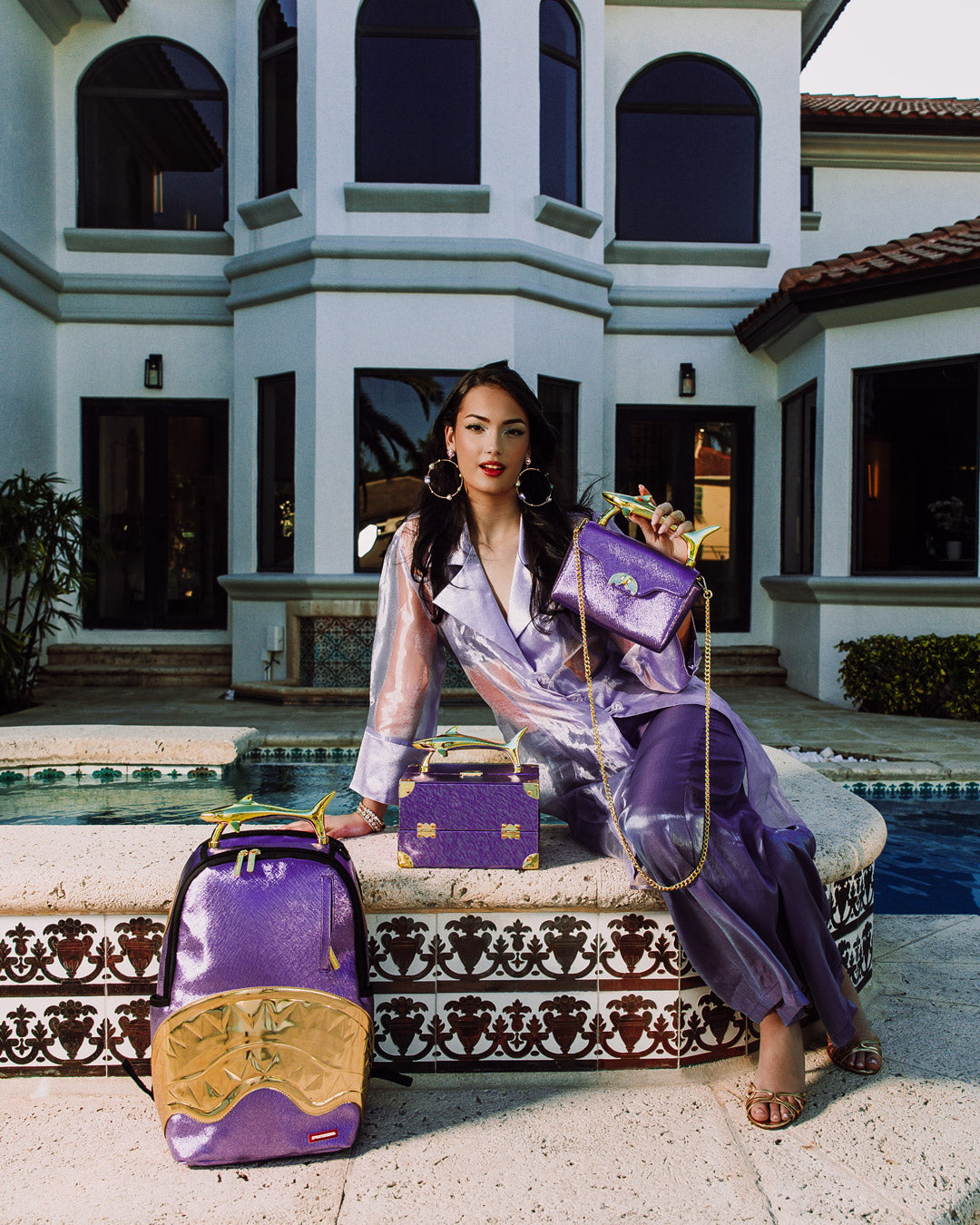 Dimensions: 18" x 6" x 11.5" • Front zipper pocket • Side pockets • Zippered Stash pocket • Separate velour sunglass compartment • Ergonomic mesh back padding • Adjustable Straps for custom sizing • Gold zippers with metal hardware • Metal "Sprayground Authentic" badge • Slide through back sleeve connects to carry-on luggage to free your hands