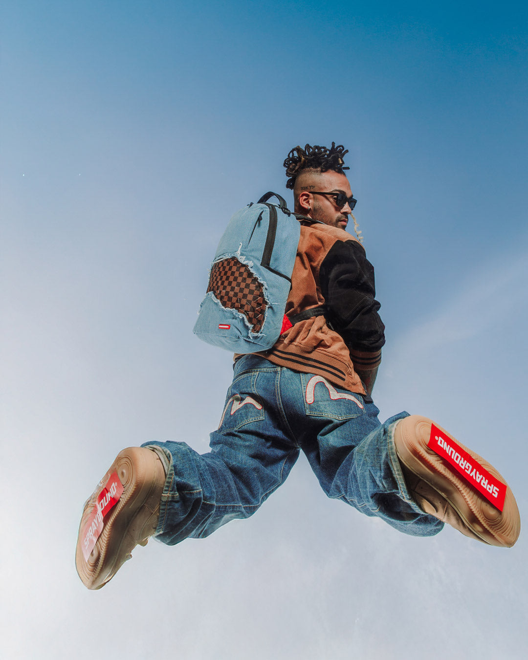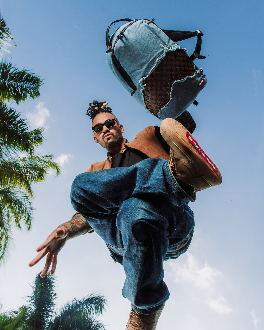 Dimensions: 18" x 6" x 11.5" • Front zipper pocket • Side pockets • Zippered Stash pocket • Separate velour sunglass compartment • Ergonomic mesh back padding • Adjustable Straps for custom sizing • Gold zippers with metal hardware • Metal "Sprayground Authentic" badge • Slide through back sleeve connects to carry-on luggage to free your hands