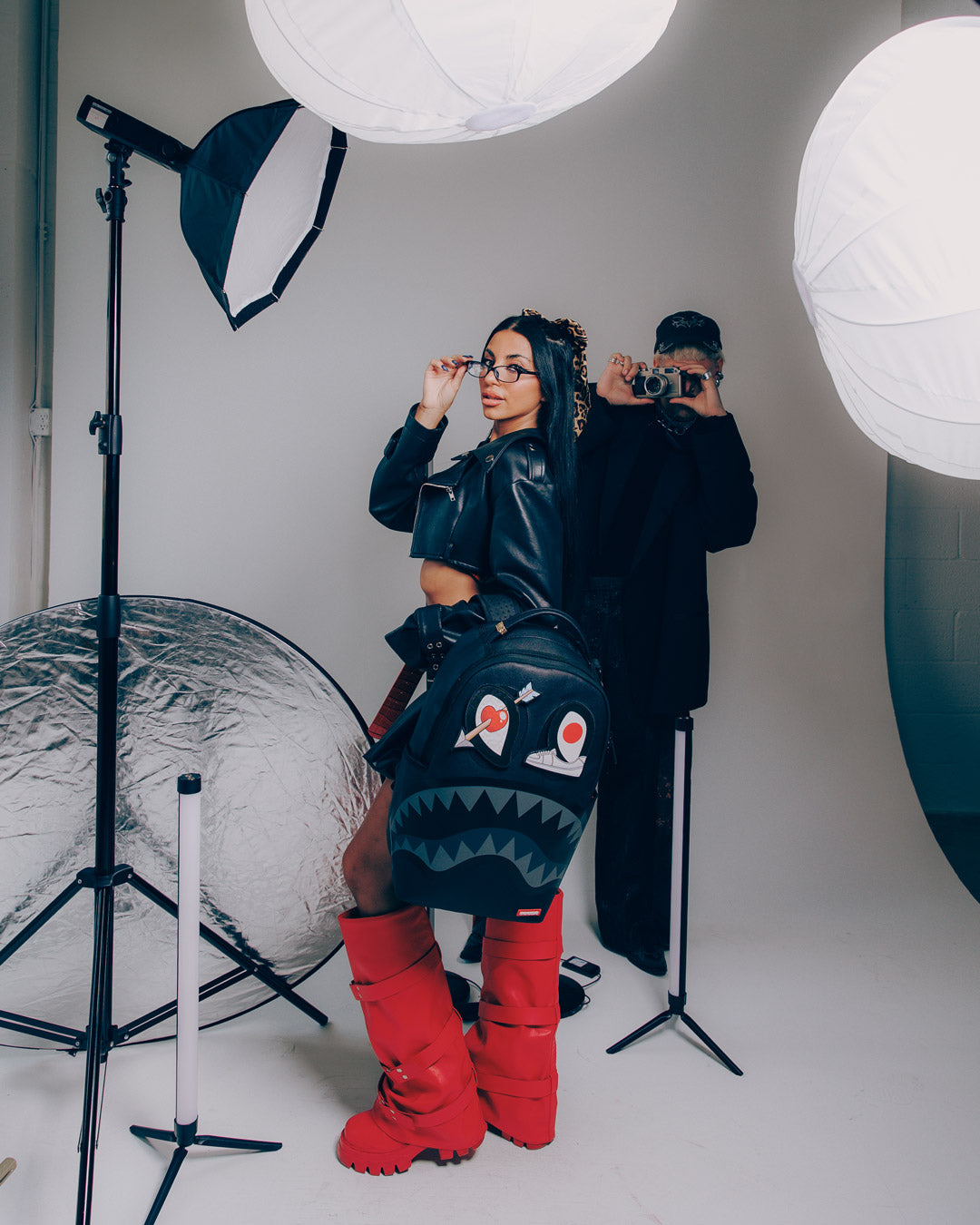Dimensions: 18" x 6" x 11.5" • Front zipper pocket • Side pockets • Zippered Stash pocket • Separate velour sunglass compartment • Ergonomic mesh back padding • Adjustable Straps for custom sizing • Gold zippers with metal hardware • Metal "Sprayground Authentic" badge • Slide through back sleeve connects to carry-on luggage to free your hands