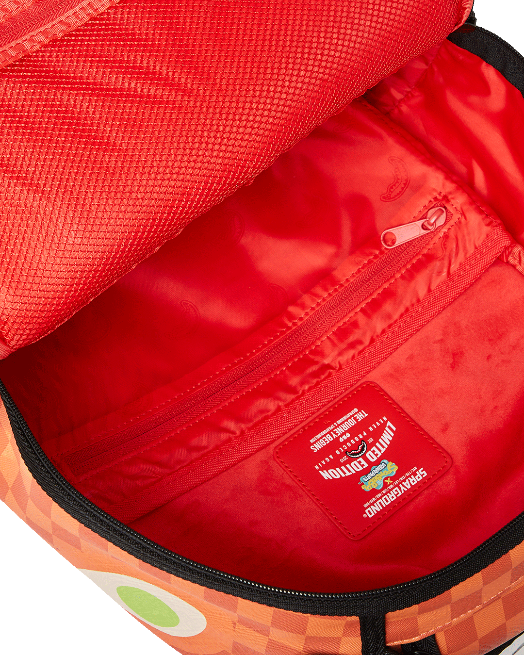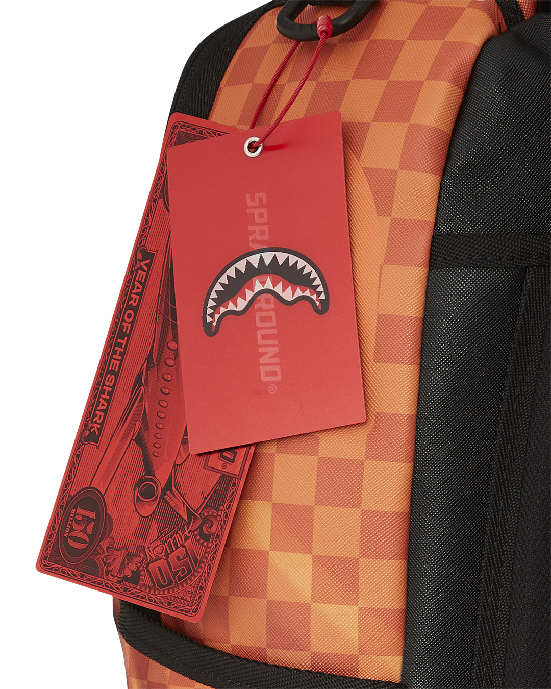 Dimensions: 18" x 6" x 11.5" • Front zipper pocket • Side pockets • Zippered Stash pocket • Separate velour sunglass compartment • Ergonomic mesh back padding • Adjustable Straps for custom sizing • Gold zippers with metal hardware • Metal "Sprayground Authentic" badge • Slide through back sleeve connects to carry-on luggage to free your hands