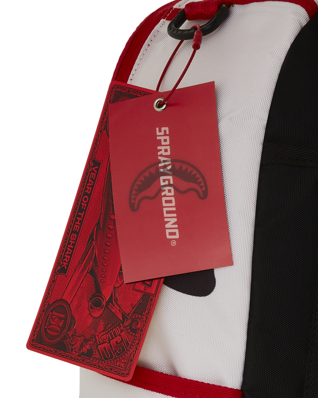 Dimensions: 18" x 6" x 11.5" • Front zipper pocket • Side pockets • Zippered Stash pocket • Separate velour sunglass compartment • Ergonomic mesh back padding • Adjustable Straps for custom sizing • Gold zippers with metal hardware • Metal "Sprayground Authentic" badge • Slide through back sleeve connects to carry-on luggage to free your hands